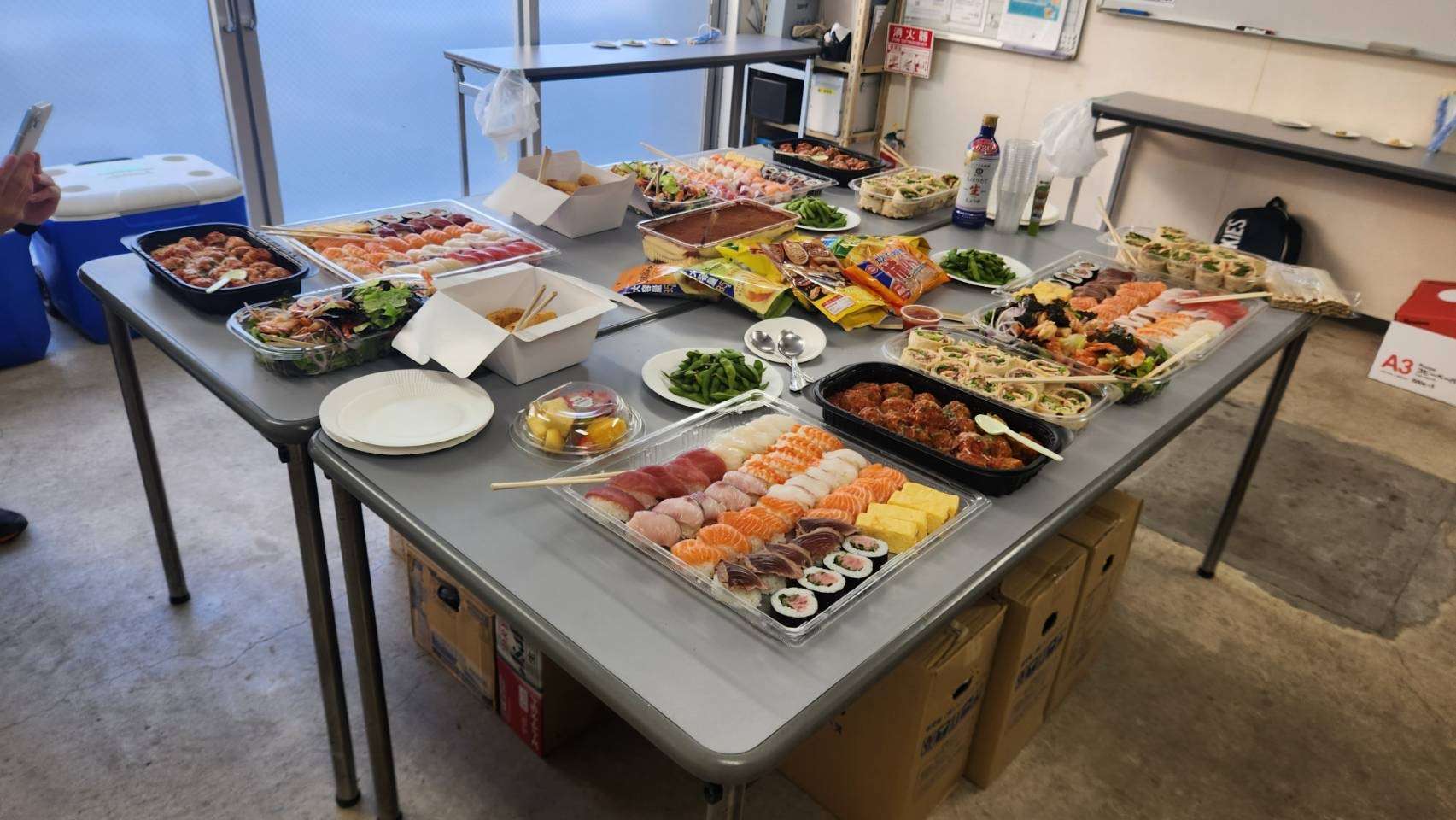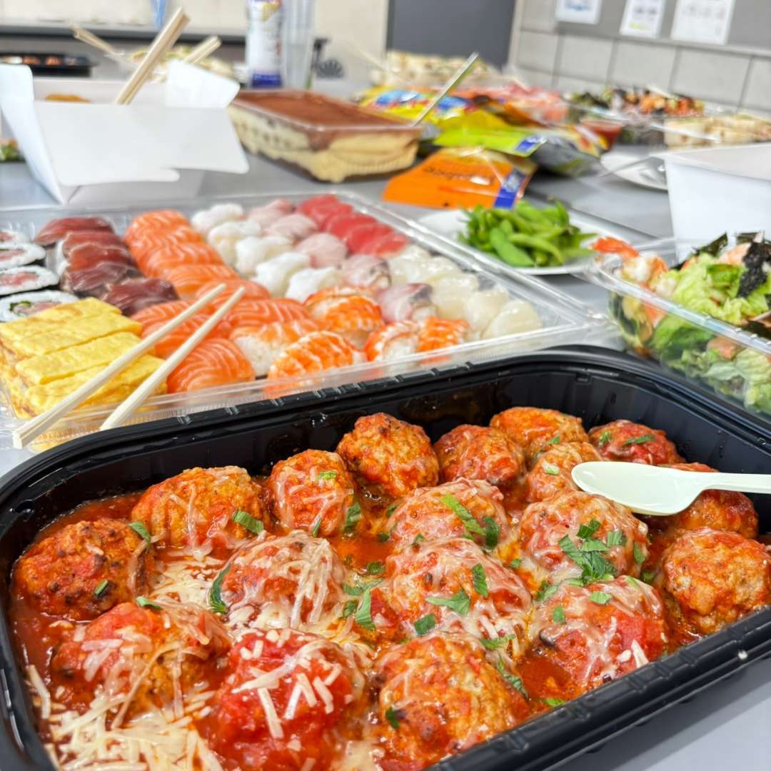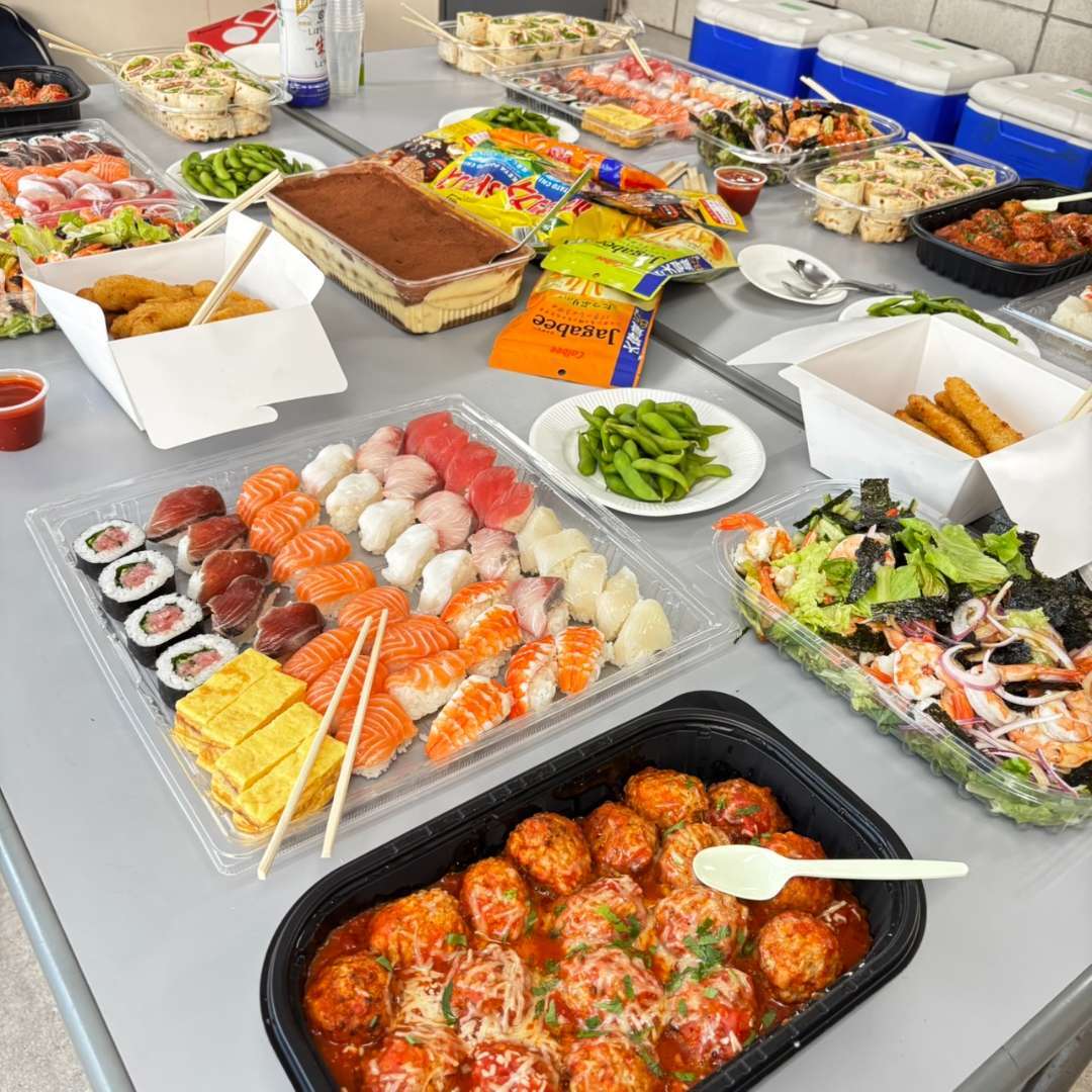 豪華なお寿司や大きなティラミス、海老とサーモンのチョレギサラダ、ミートボール、ハイローラーなど、どれもとってもおいしそう!!🍣