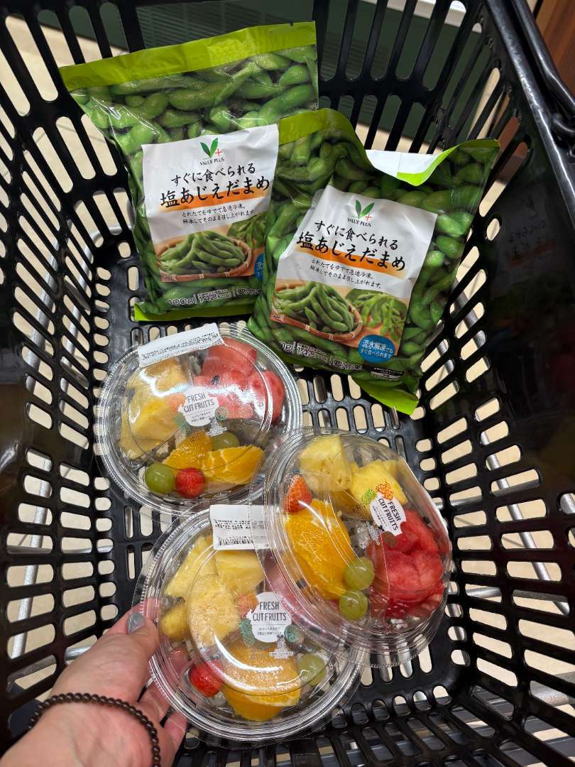 会社近くのスーパーで枝豆やフルーツ、チーズをちょっと買い足し!