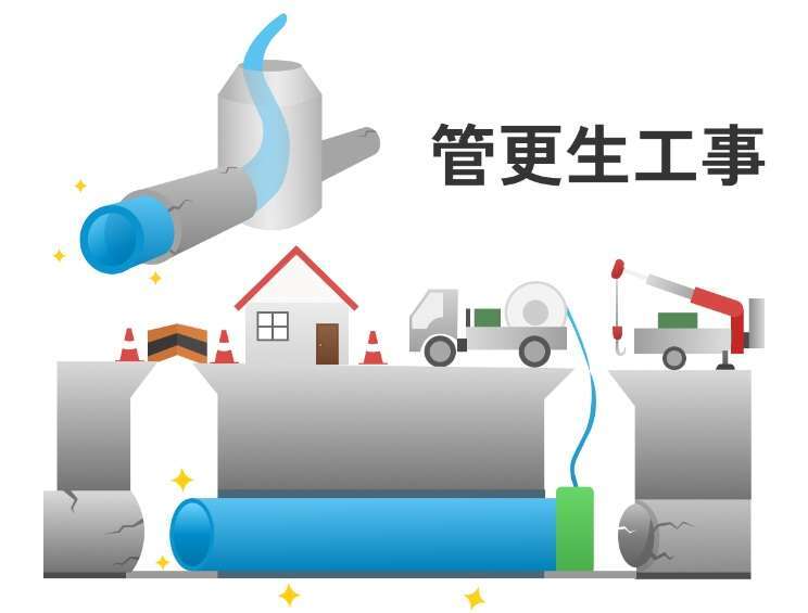 ※管更生工事とは、老朽化した下水管を補修・強化し、長く使えるようにする工事です。