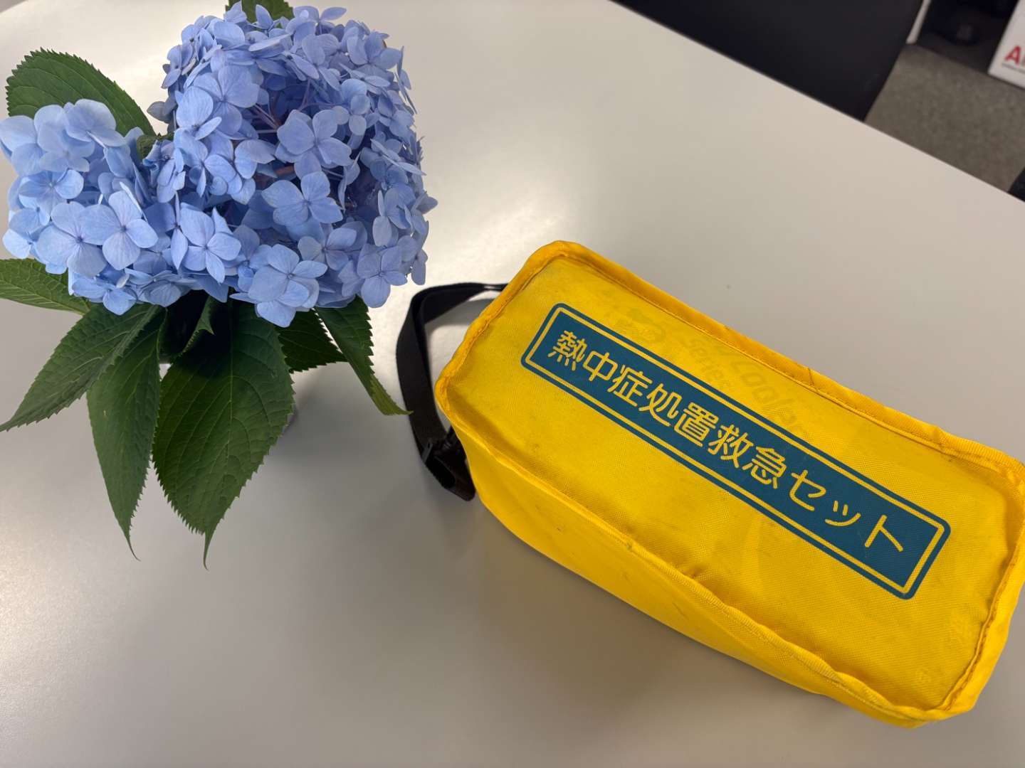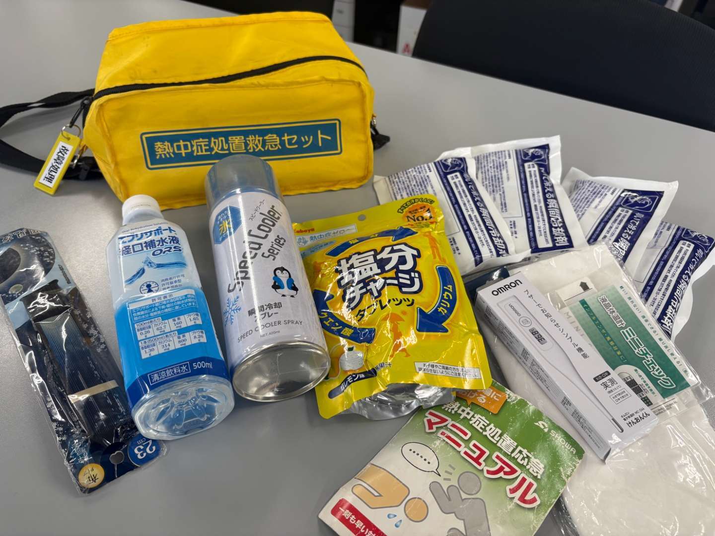 (↓各現場に必ず常備している熱中症対策セットです🌞)